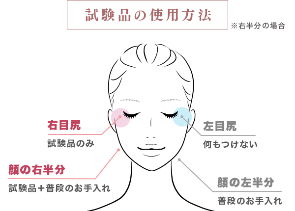 【1】洗顔後、半顔に試験品を1日2回(朝・晩)塗る。
