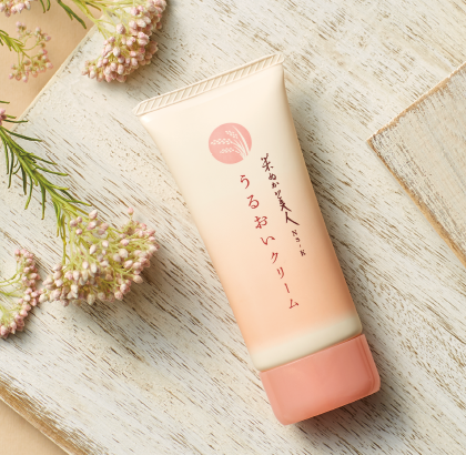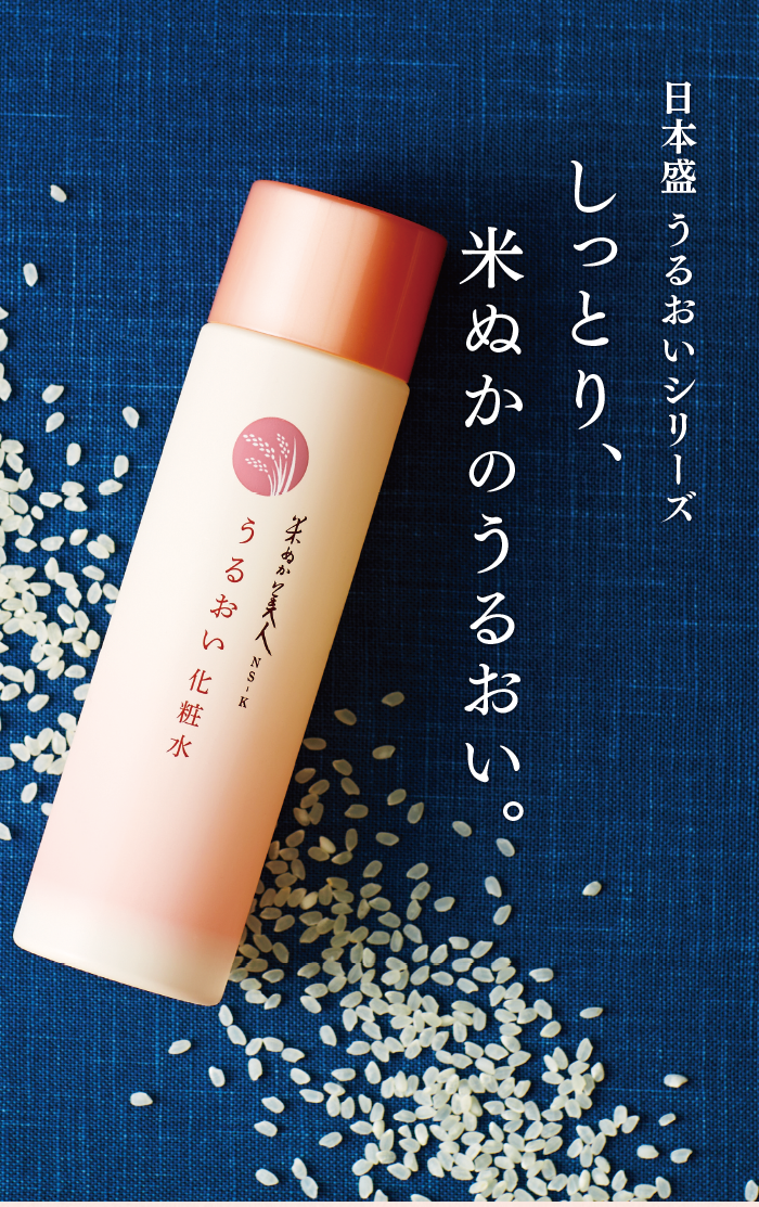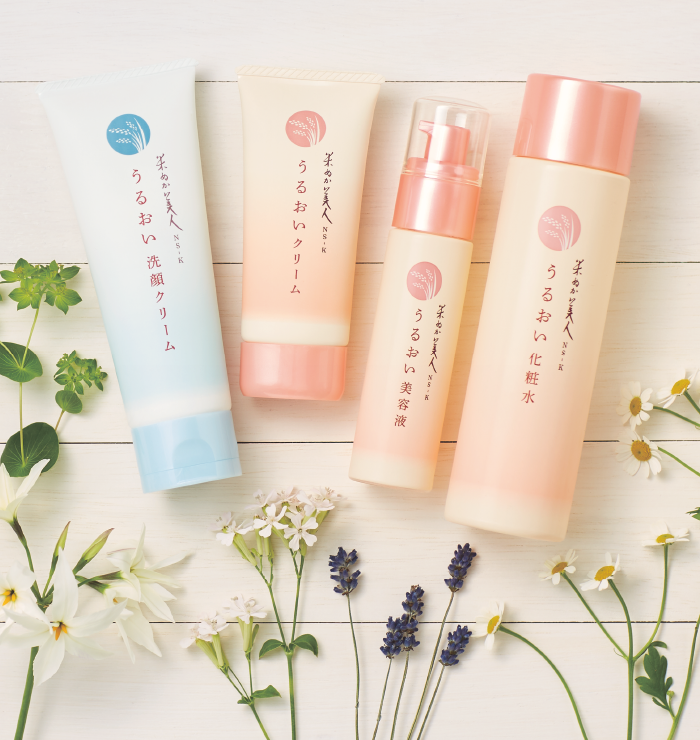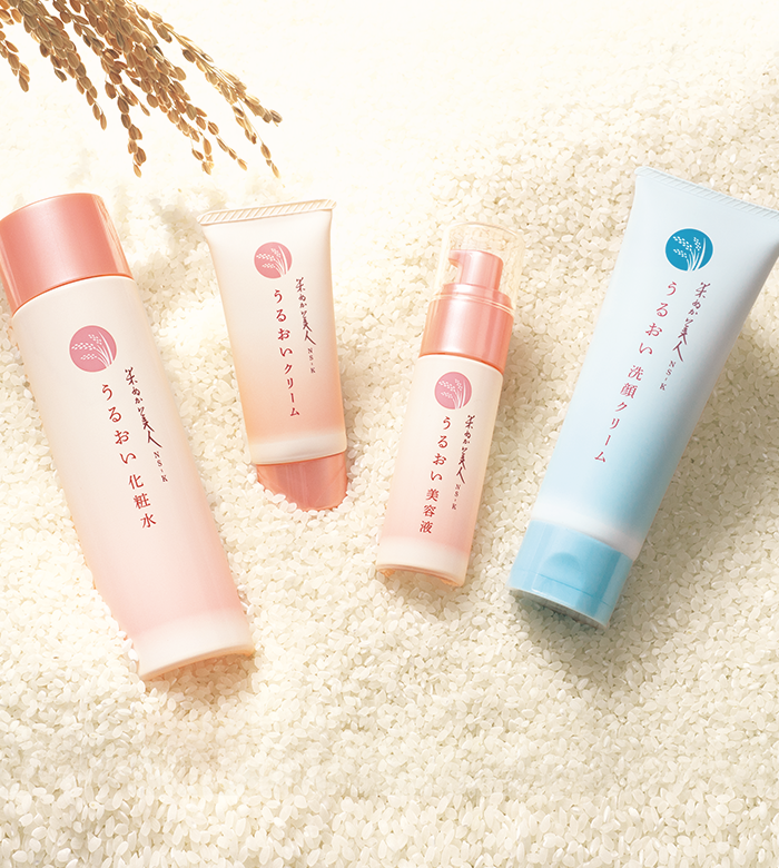 うるおいシリーズは、原料自体にクセのないものを選ぶと同時に、米、米ぬか、日本酒、そして果実や植物から抽出したエキスの自然な香り、色、感触を生かしています。